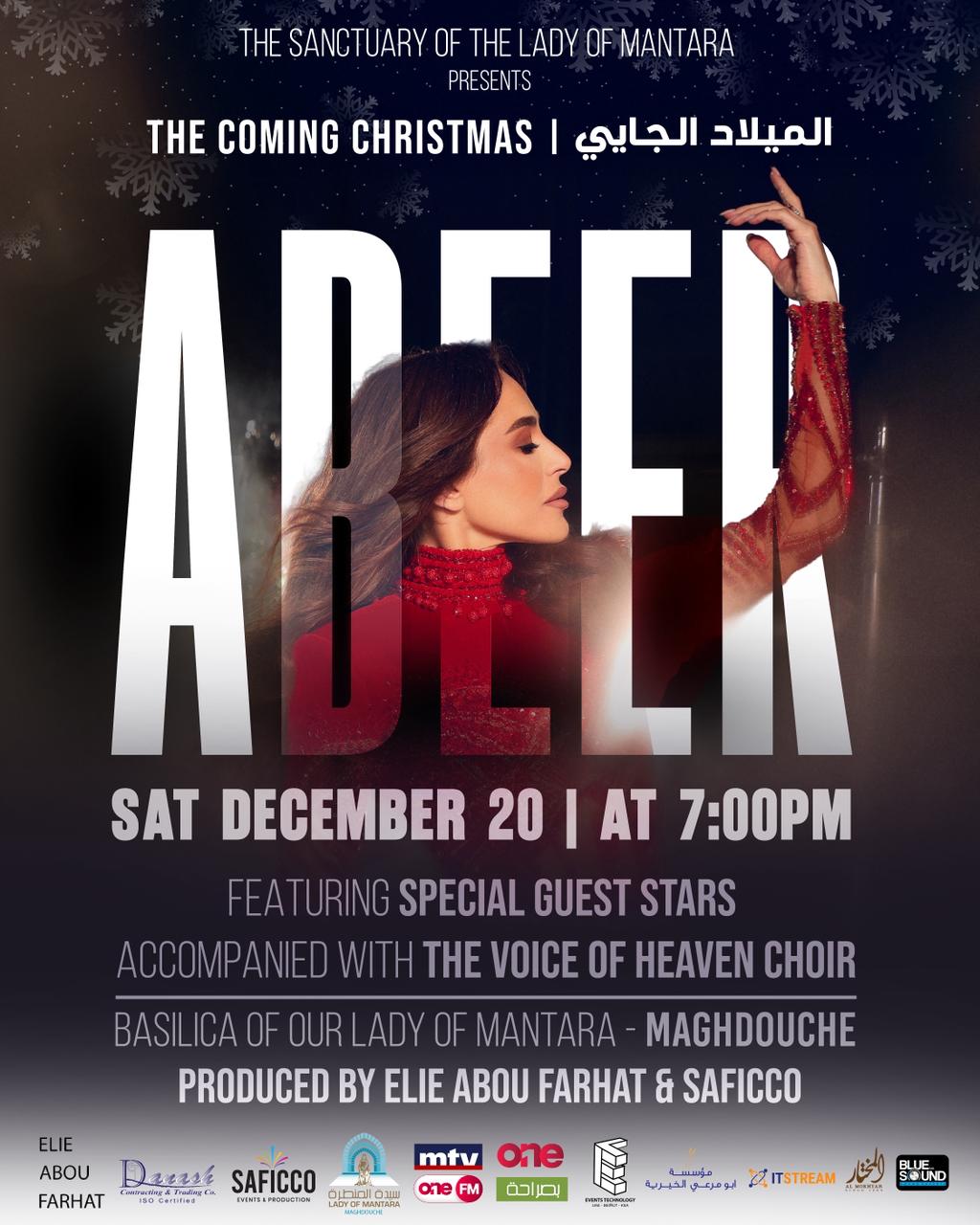 في أجواء ميلادية مميزة، تحيي الفنانة عبير نعمة حفلاً استثنائياً في بازيليك سيدة المنطرة – مغدوشة تحت عنوان “الميلاد…