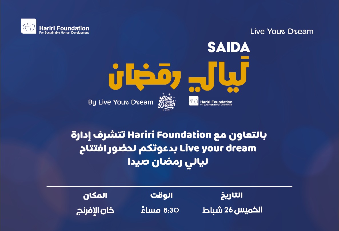تتواصل في خان الإفرنج، فعاليات الموسم السادس لـ”صيدا مدينة رمضانية التي تنظمها مؤسسة الحريري وتتضمن أمسيات وأنشطة تراثية وثقافية وترفيهية…