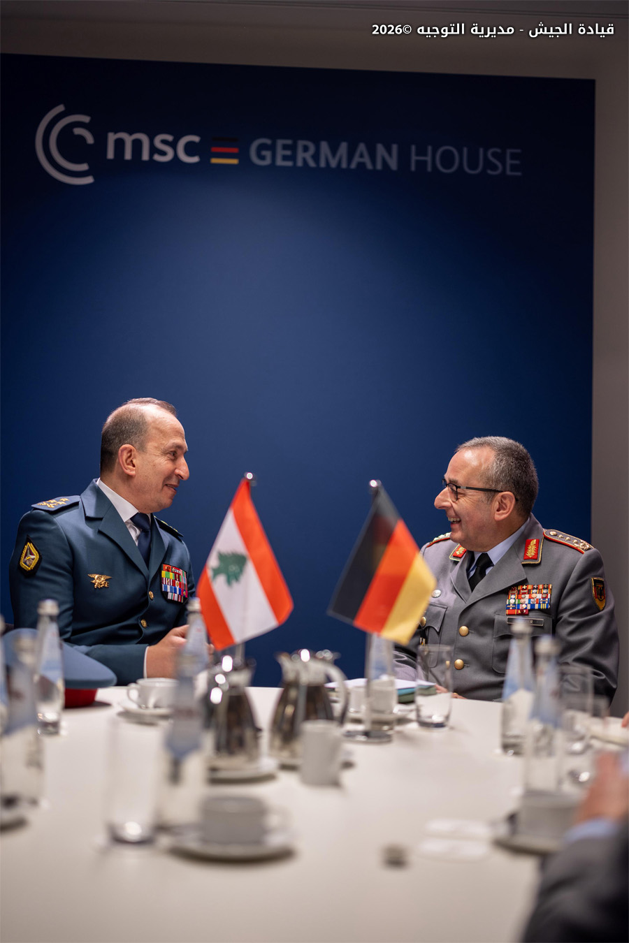 شارك قائد الجيش العماد رودولف هيكل في مؤتمر ميونيخ الثاني والستين للأمن للعام 2026 الذي أقيم في جمهورية ألمانيا الاتحادية ابتداءً من 13/2/2026 ولغاية 15/2/2026.